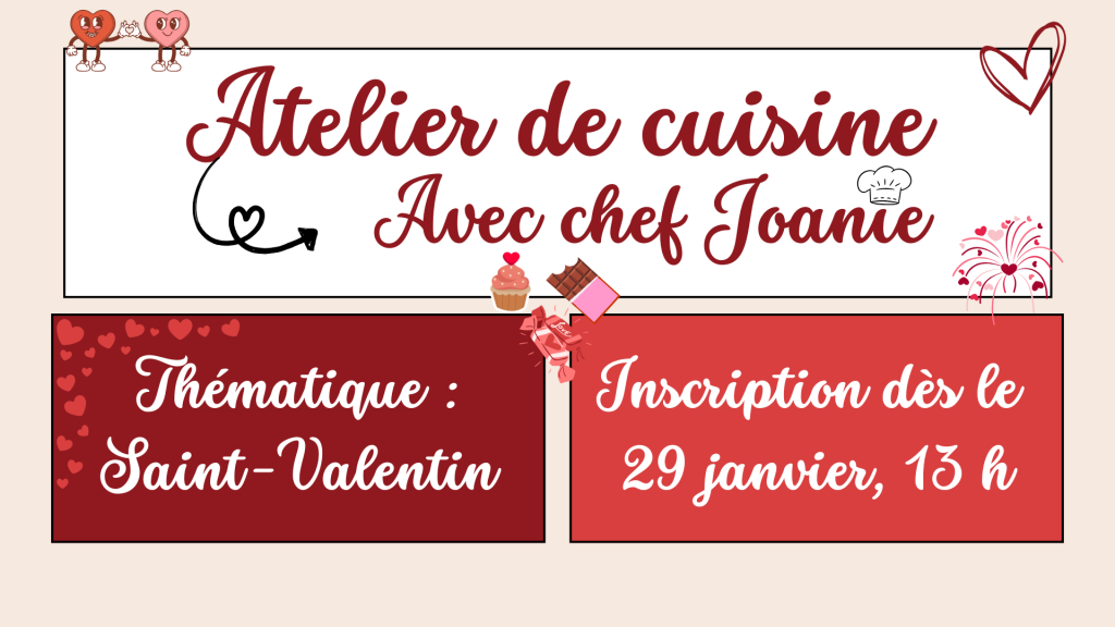 Nos ateliers de cuisine ponctuels sont proposés à divers moments de l’année, en lien avec les principales fêtes. Chaque activité met de l’avant des recettes thématiques adaptées aux enfants, favorisant à la fois l’apprentissage culinaire et le plaisir de cuisiner en famille.