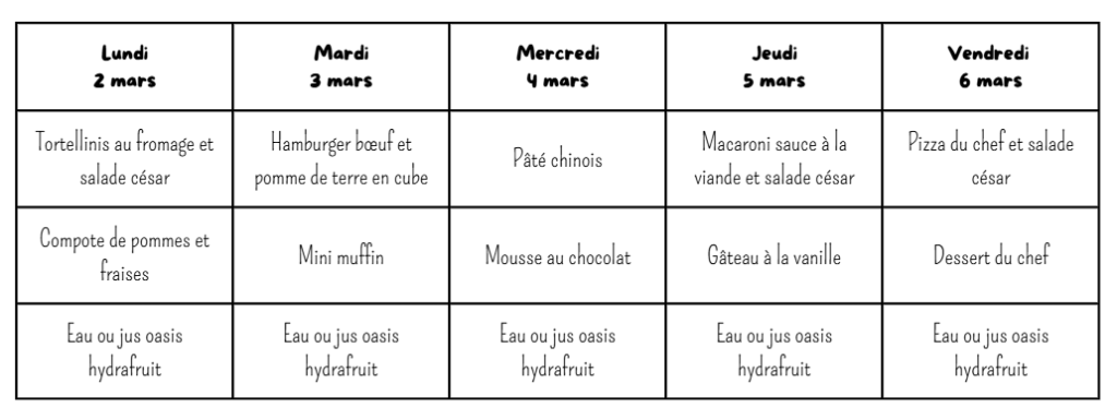 Menu de la semaine